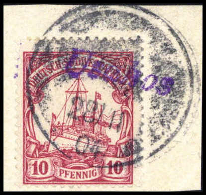 USAKOS, violetter Gummistempel mit Petschaft vom 28/11 04, vorzüglich klar und vollständig auf tadellosem Briefstück 10 Pfg. Eines der schönsten bekannten Stücke dieser seltenen Entwertung, sign. Czimmek BPP, Fotoattest Steuer BPP