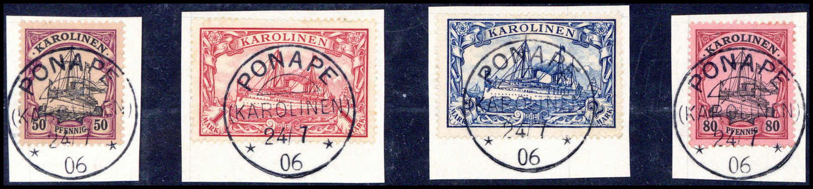 3 Pfg.-5 Mk., die kpl. Serie auf außergewöhnlich schönen, tadellosen Briefstücken, alle Werte mit einheitl. Stempel PONAPE 24/7 06. In dieser Form selten, Höchstwerte sign. Bothe BPP. Katalogpreis: 1.000,-+