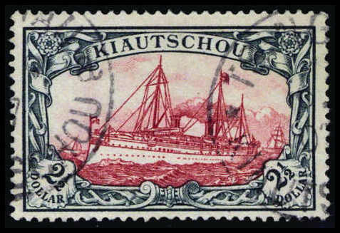 2½ $, tadelloses Exemplar mit Stempeln TSINGTAU KIAUTSCHOU * a 6/9 07, sign. Bothe, Fotoattest Steuer BPP. Katalogpreis: 6000,-