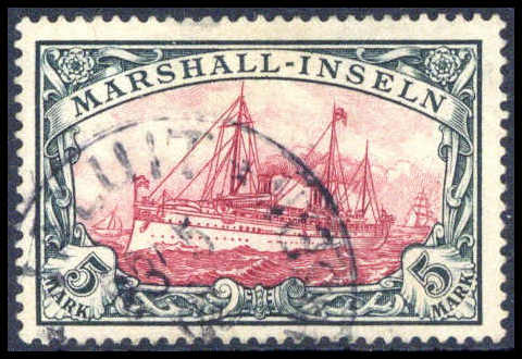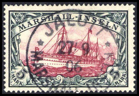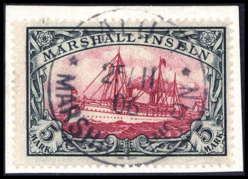5 Mk., tadelloses Bfstk. mit nur einem, genau zentr. Stempel JALUIT 26/11 06. Katalogpreis: 600,-+