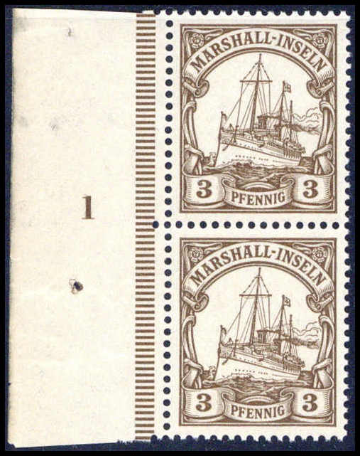 3 Pfg., tadellos postfrisches senkr. Bogenrandpaar mit Platten-Nr."1"