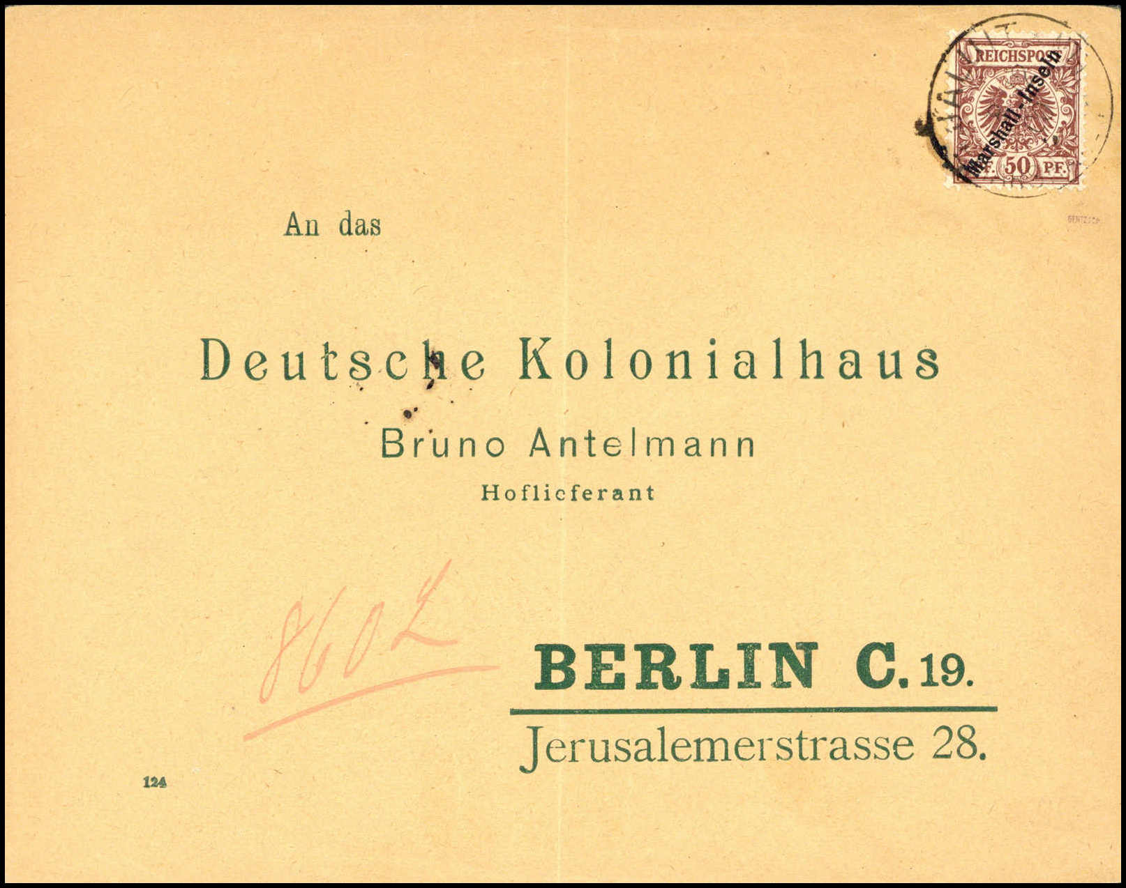 50 Pfg., tadellose Einzelfrankatur mit zweitem Stempel JALUIT auf gef. Einschreibebrief mit rotem provisor. R-Vermerk nach Berlin mit Ak.-Stempel