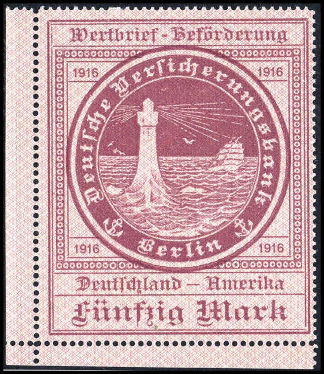50 Mk. lilakarmin, tadellos ungebr. aus der li. unteren Bogenecke. Katalogpreis: 330,-