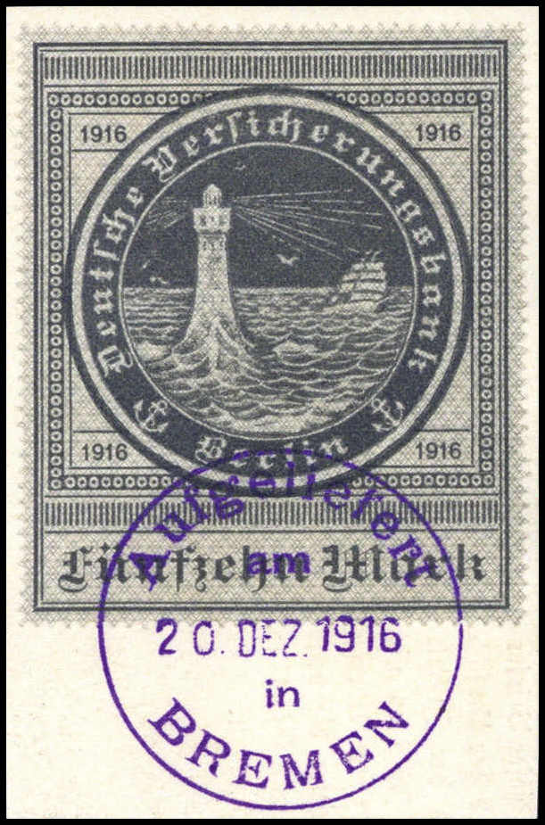 15 Mk., tadelloses Exemplar auf Wertkartenabschnitt mit idealem Stempel BREMEN 20/12 16, Fotoattest Wagner BPP. Katalogpreis: 400,-+