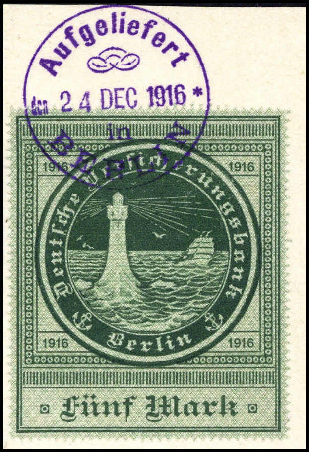 5 Mk., tadelloses Exemplar auf Wertkarten-Abschnitt mit schönem Stempel BREMEN 24/12 16, Fotoattest Wagner BPP. Katalogpreis: 300,-+