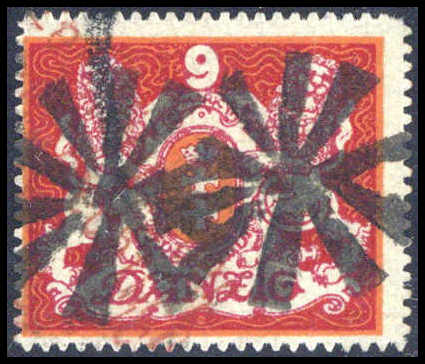 9 Mk., tadelloses Exemplar mit sternförmigen Sicherungsstempel von DANZIG-LANGFUHR, Fotobefund Tworek BPP. Katalogpreis: 220,-