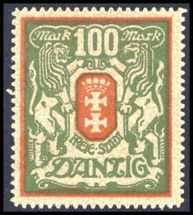 100 Mk., Wz. X und Plattenfehler I, tadellos postfrisch. Katalogpreis: 200,-