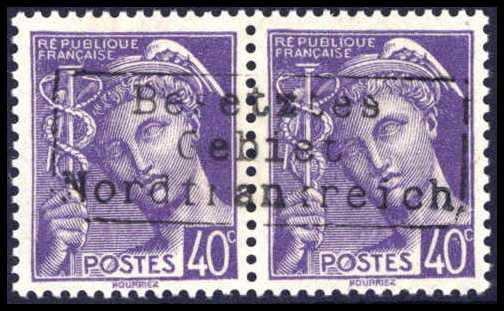 10 und 90 C., nebeneinander geklebt auf Brief und erst dann mit dem deutschen Besetzungs-Stempel versehen (Marken aus Publikums-Bestand) mit klaren Stempeln DUNKERQUE 20/7 40 nach Ghyvelde. Selten, sign. Mayer, Fotoattest Pieles. Katalogpreis: 800,-+