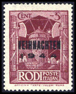 Insel Rhodos, Type I, Einzelfrankatur (Brief mit Tagesstpl. von Rodi vom 20.1.45 nach Schweinfurt (stärkere Beförd.-Spuren). Selten, Fotoattest Müller BPP. Katalogpreis: 1.600,-