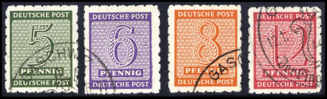 5-12 Pfg., PMT Gaschwitz, tadellos gestplt. Serie. Eine ganz große SBZ-Rarität, Fotoattest Ströh BPP. Katalogpreis: 9.000,-