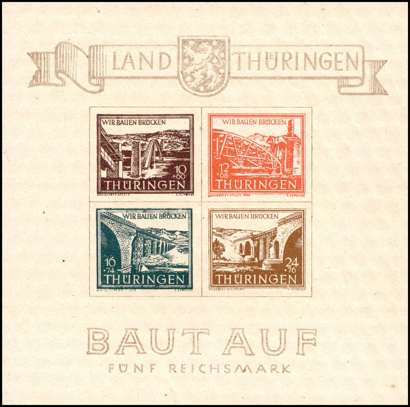 Brückenbau-Block, Papier yy, Auflage 1, tadellos postfrisch. Ein sehr seltener, unterbewerteter Block, von dem nur wenige perfekt postfrische Exemplare erhalten geblieben sind, Fotoattest Schulz BPP. Katalogpreis: 2.600,-+