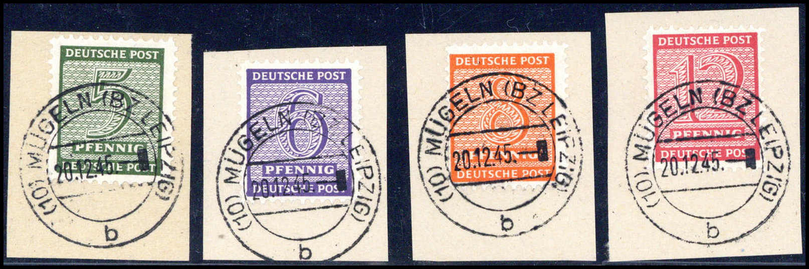 5-12 Pfg., PMT Mügeln, tadellose Serie auf besonders schön gestplt. Briefstücken, sign. Jasch BPP. Katalogpreis: 800,-+