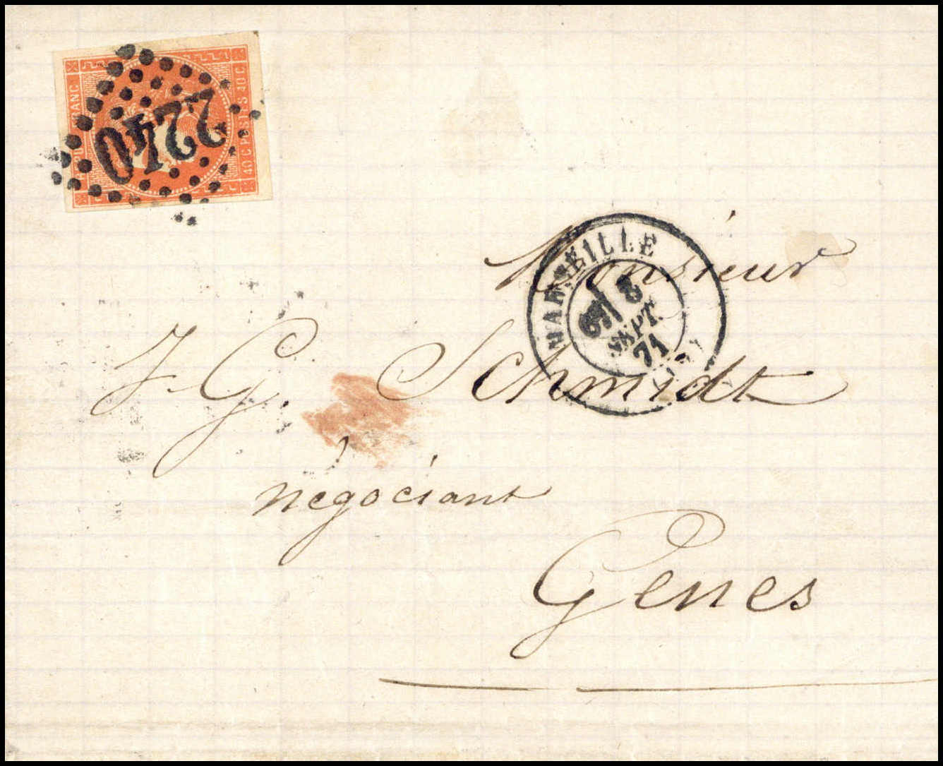 40 C. rotorange, frischer Kabinettbrief von Marseille (1871) nach Genua