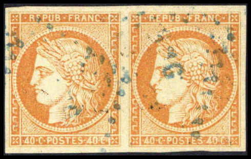 40 C., sauber gestempeltes, waagr. Kabinettpaar, ringsum breitrandig und in besonders frischer Farbe, sign. Richter. Katalogpreis: 1.500,-+