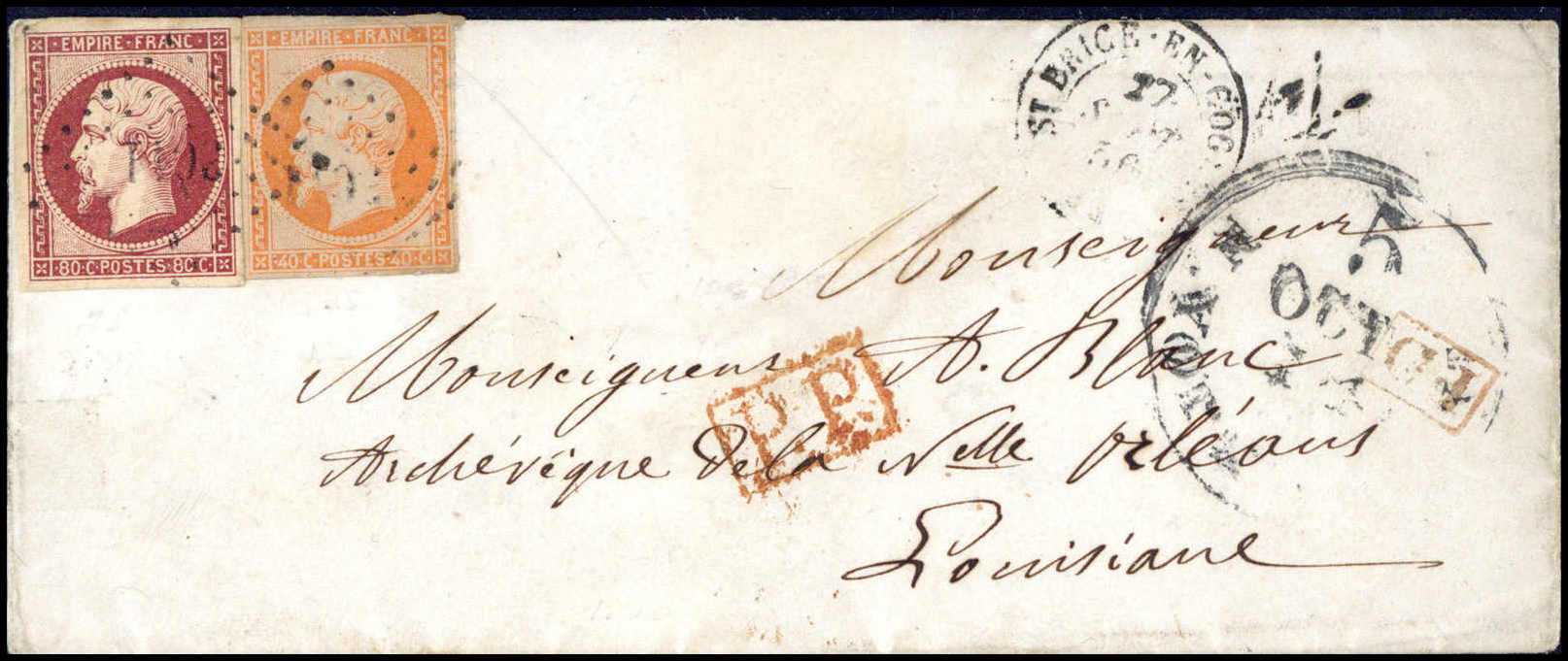 40 und 80 C. auf kleinem Prachtbrief mit Stempel "3011" ST.BRICE-EN-COGNAC nach USA