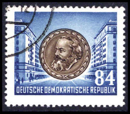 Marx-Blöcke, tadellose Garnitur, die gezähnten mit Ortsstempel-Entwertung, die ungezähnten mit SST. Katalogpreis: 600,-+