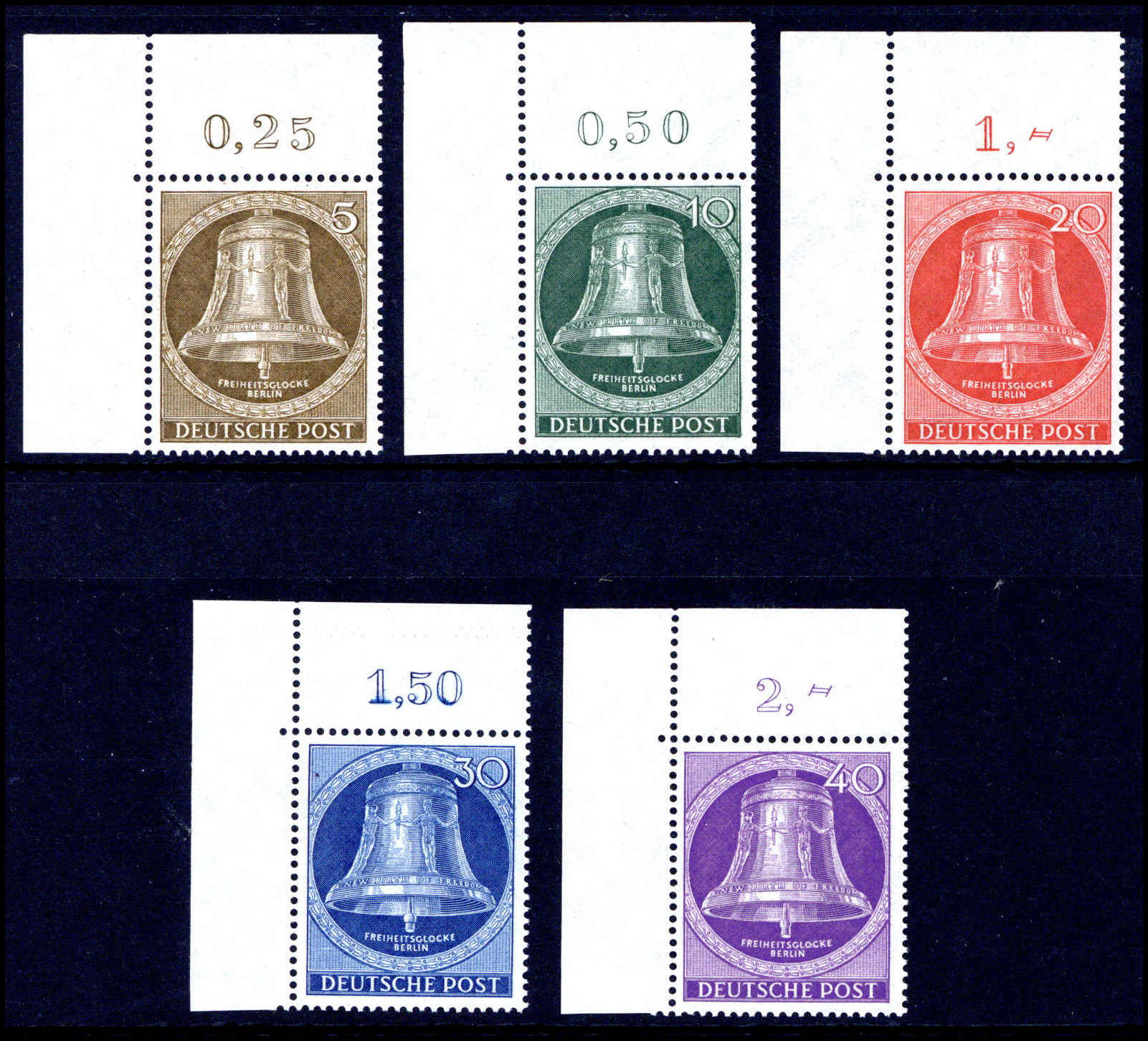 Glocke Mitte, tadellos postfrische Serie einheitlich aus der li. oberen Bogenecke. Katalogpreis: 95,-+
