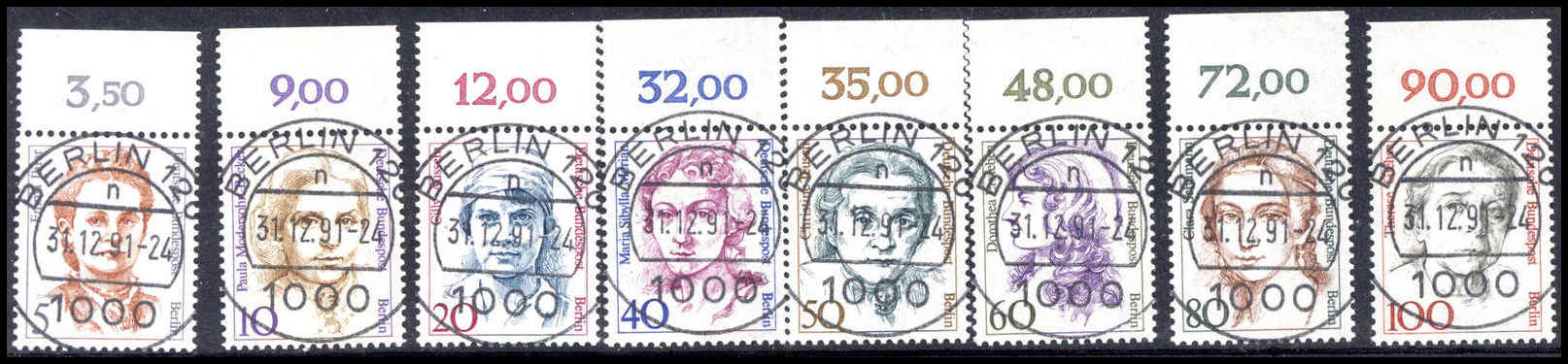 Frauen, alle 17 Werte in tadellosen Oberrandstücken mit Vollstempel BERLIN 31/12 91 (Letzttag), Fotobefund Schlegel BPP