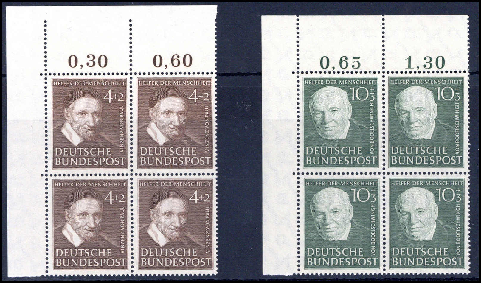 Wohlfahrt, tadellos postfrische Viererblockserie aus der li. ob. Bogenecke. Katalogpreis: 560,-+