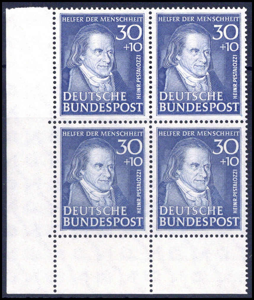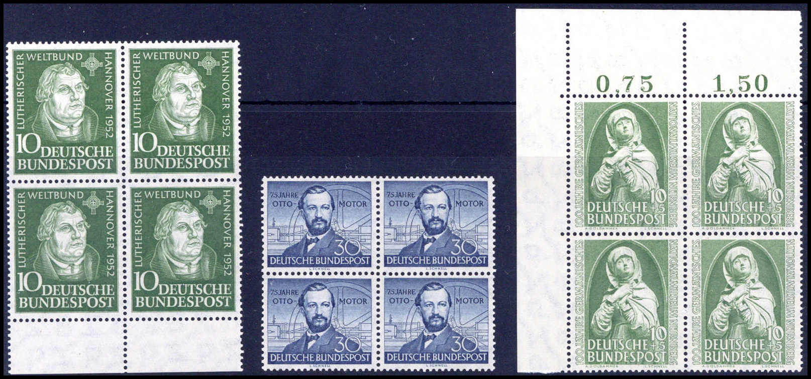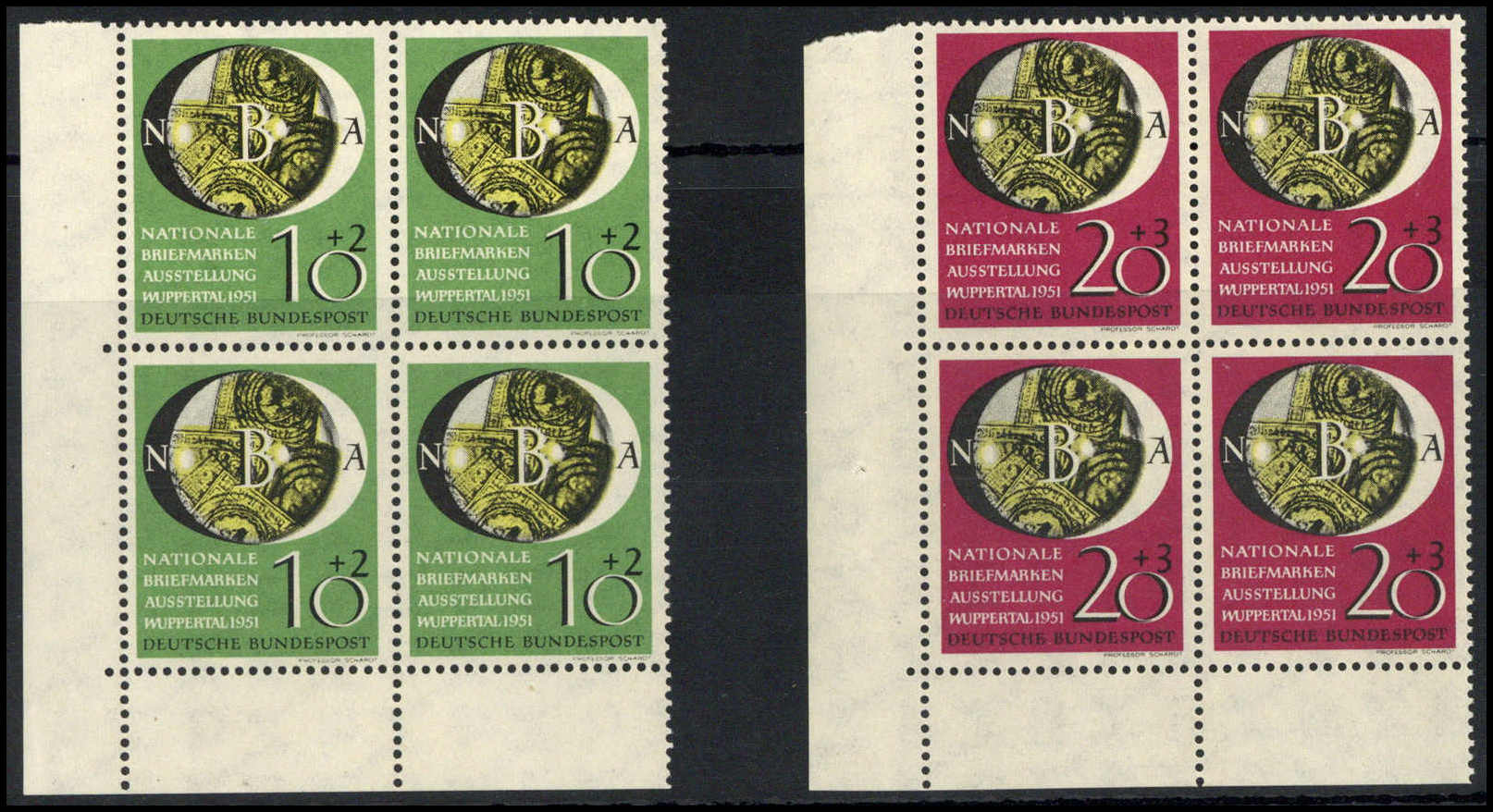 Wuppertal, postfrische Viererblockserie aus der li. unt. Bogenecke (20 Pfg. ein Wert kl. Haftstelle). Katalogpreis: 360,-+