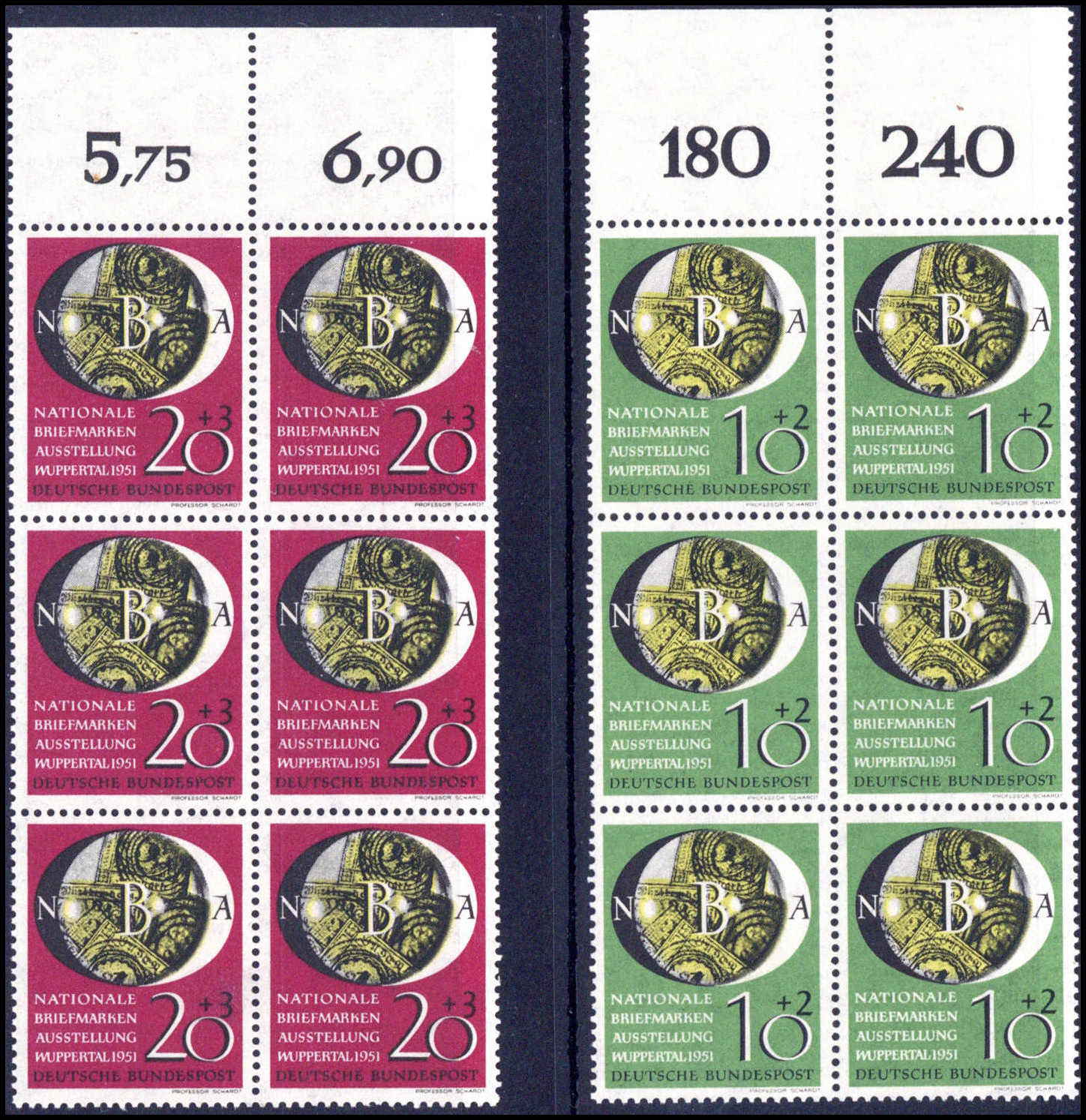 Wuppertal, postfrischer senkr. Sechserblock vom Oberrand (10 Pfg. ein Wert winz. Haftpunkt). Katalogpreis: 540,-