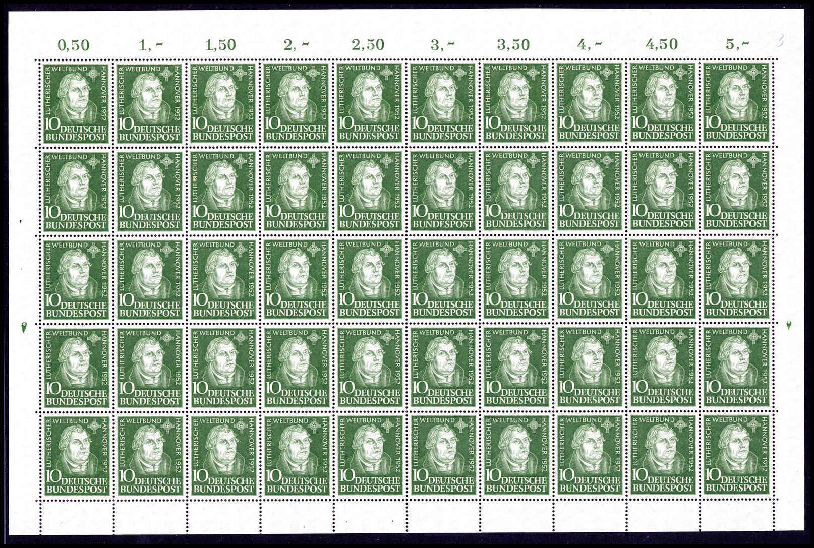 Luther, tadellos postfrischer, ungef. Originalbogen zu 50 Marken. Katalogpreis: 750,-+