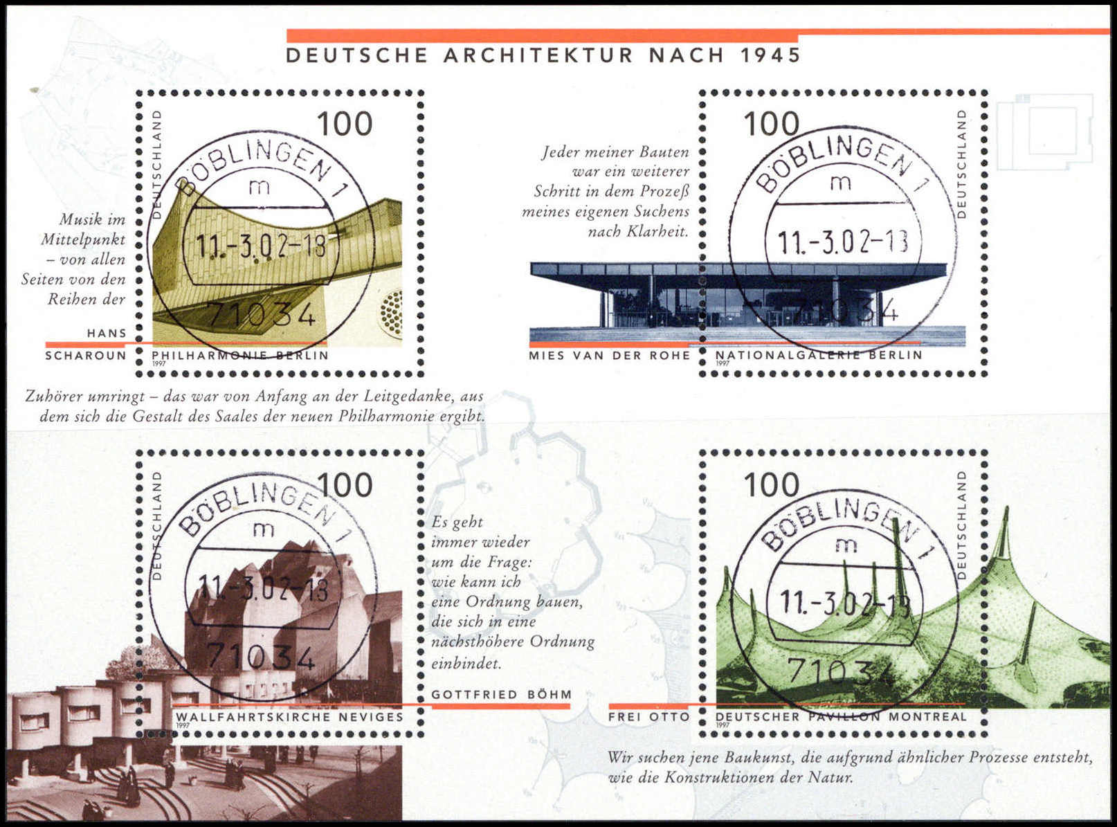 Architektur-Block, Mi.1906 mit Plattenfehler I, tadellos gestempelt