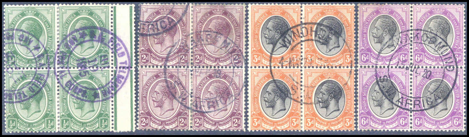1/2 d., 2 & 3 d., 6 d., 1 s., 2/6 s. - 10 s. jeweils im Viererblock, einige Zähne angetrennt und 10 s. eine Marke kl. Knitter. Insgesamt acht Viererblocks. Hoher Katalogwert
