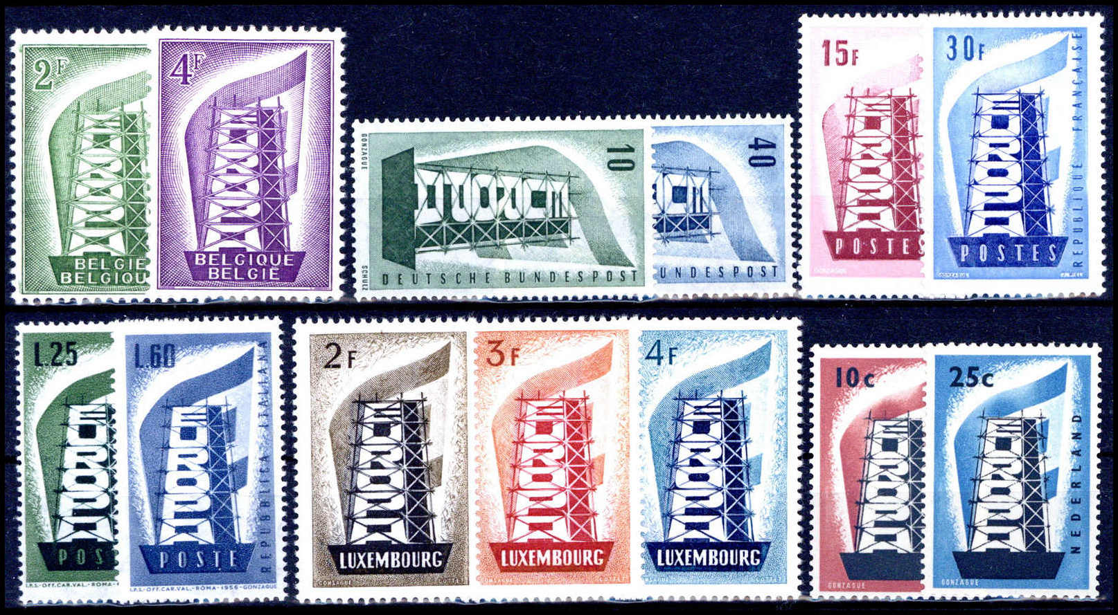 8346 imageCEPT - Jg. 1956 postfrisch (alle sechs Länder), teilweise leicht gebräunter Gummi, dazu drei FDCs: Luxemburg 1956, Liechtenstein 1960 und Bund 1960
