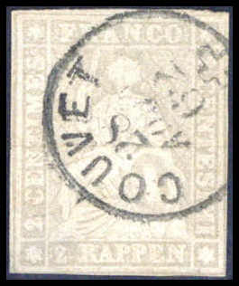 2 Rp., Prachtstück mit klarem K1 COUVET, sign. Liniger, Fotobefund Abt BPP. Katalogpreis: 480,-