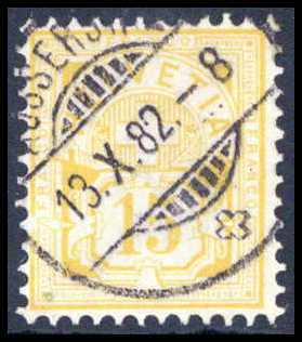 15 C., tadellos gestempelt, Kopie von Attest Hermann SBPV. Katalogpreis: 300,-+