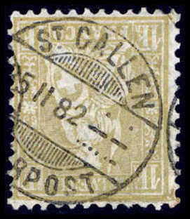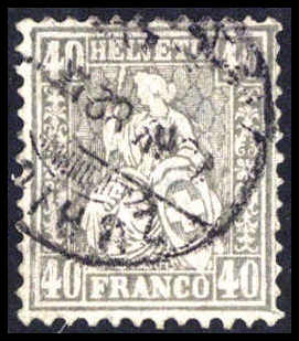 40 C. dunkelgrau, schönes Exemplar mit genau zentr. und gerade aufges. Stempel RIEHEN 9/2 82. Sauber ausgebessert. Schweiz-Rarität, Fotobefund Marchand. Katalogpreis: 3.200,-