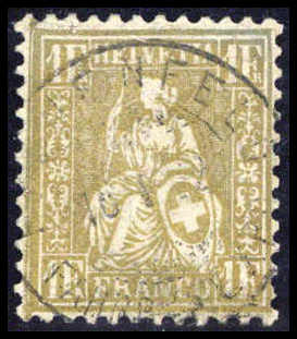 1 Fr. golden, Faserpapier, frisches und besonders schön gestplt. Exemplar (winz. Bugspur), Fotoattest Rellstab BPP. Katalogpreis: 1.100,-