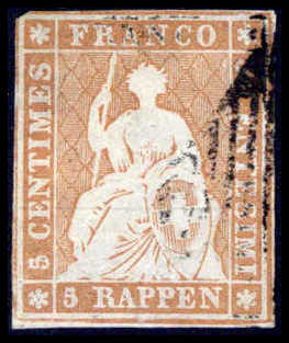 5 Rp. orangebraun, gestplt. Prachtstück, Münchener Erstauflage, Fotoattest Trüssel. Katalogpreis: 1500,-