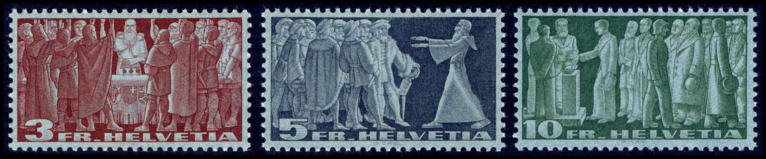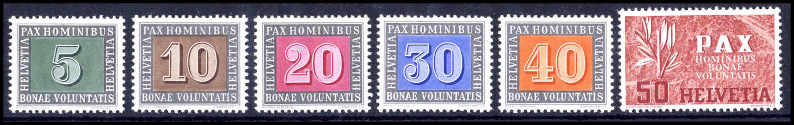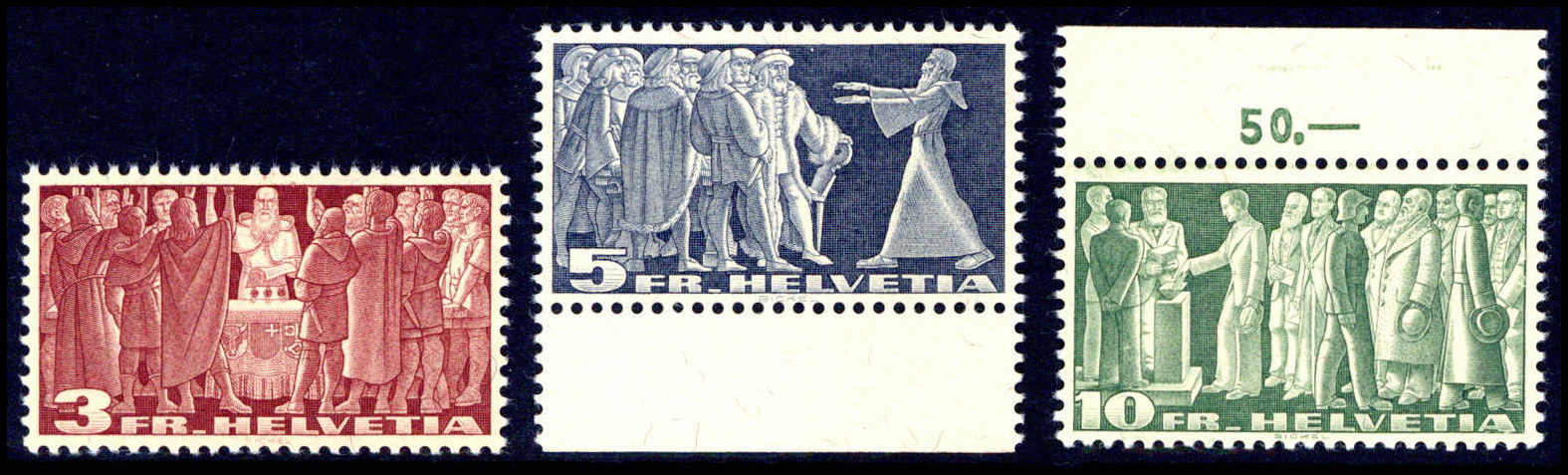3-10 Fr., grünlichgrau getöntes Faserpapier, tadellos postfr. Serie. Katalogpreis: 220,-