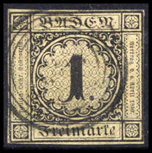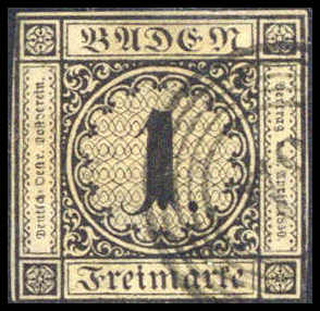1 Kr., bis auf kl. Stelle ringsum breitrandiges Exemplar mit zentr. und klarem Stempel "87" MANNHEIM. Katalogpreis: 320,-