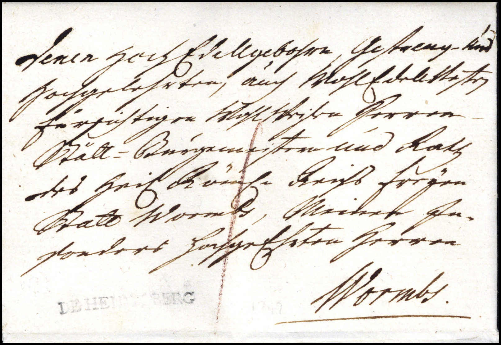 1749, DE HEIDELBERG, L1 in Schwarz auf Kabinettbrief nach Worms. Selten (Hb. 500,-)