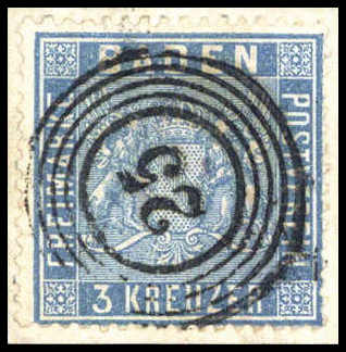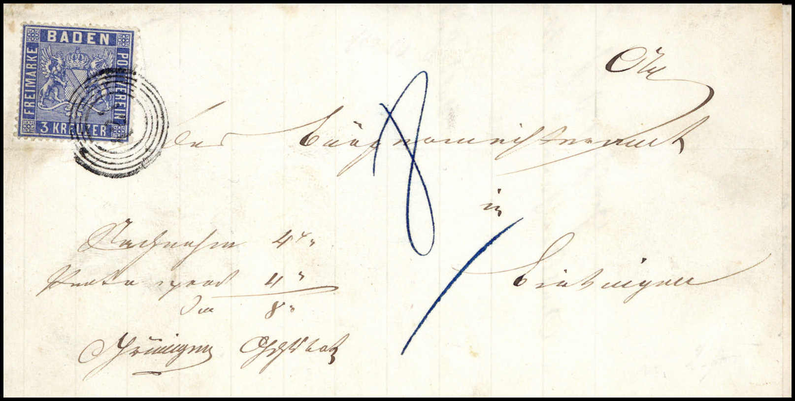 3 Kr. veilchenblau, blauer Kabinett-Faltbrief mit klarem Zackenkranzstpl. "24" CARLSRUHE, doppelt sign. Seeger. Katalogpreis: 600,-