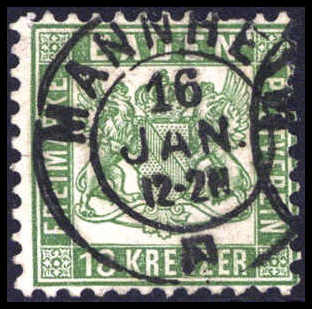 18 Kr. dunkelgrün, tieffarbiges, sauber gestempeltes Exemplar (re. etwas nachgestochen sowie winz. rs. Aufrauhung), Fotobefund Stegmüller BPP. Katalogpreis: 3.000,-