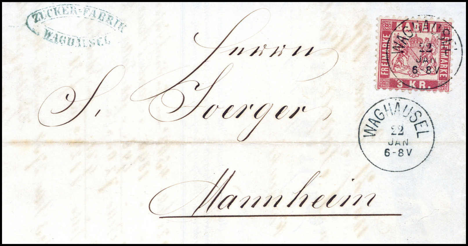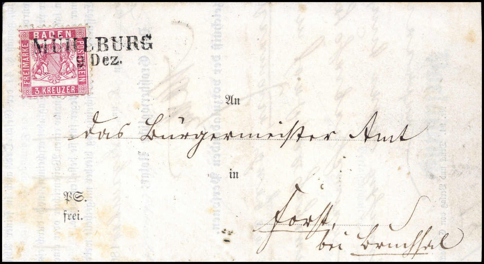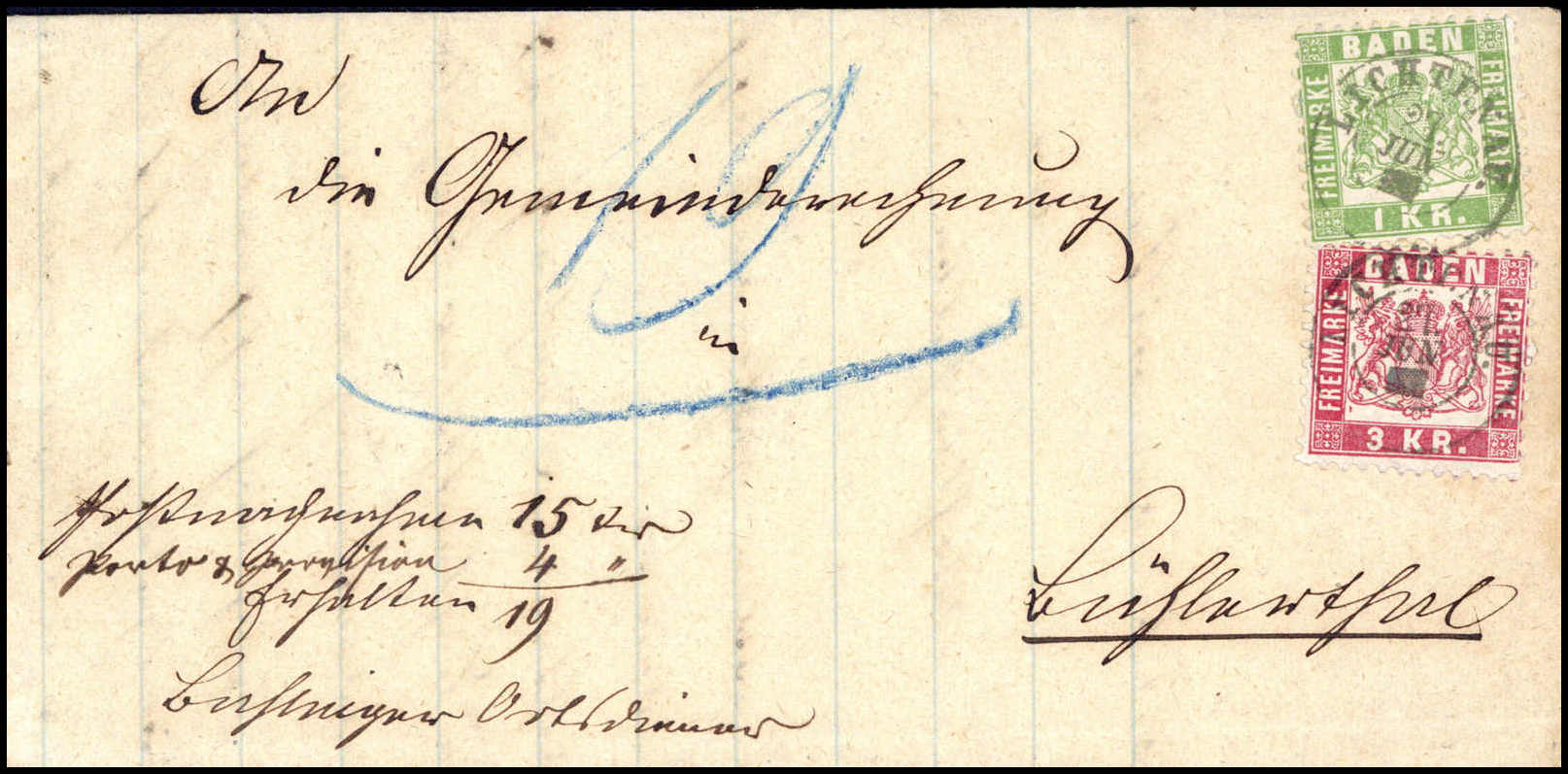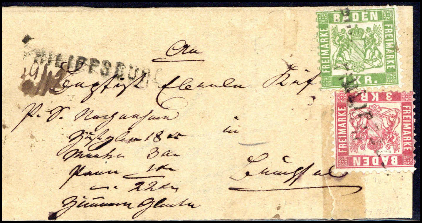 1661 23,24 imagePHILIPPSBURG, vorphilatel. L1 auf etwas fehlerhaftem, kl. Nachnahmebrief 1 und 3 Kr. vom 18.12.1868