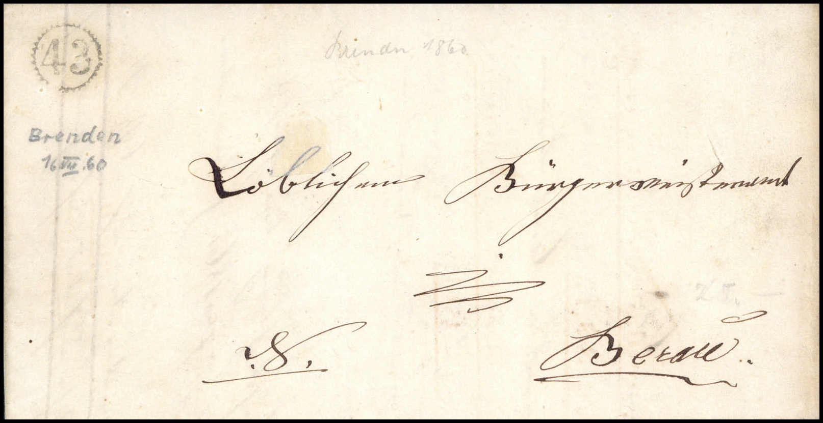 1650 image"43", klar als alleinige Abstempelung auf Dienstbrief von Brenden