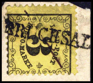 1644 8 image"24" als Entwerter und nochmals beiges. auf ansonsten ungestplt. Brief 3 Kr. a. blau