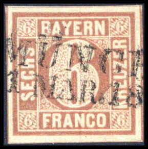 6 Kr., Kabinettstück mit L2 MÜNCHEN, sign. Brettl BPP. Katalogpreis: 300,-