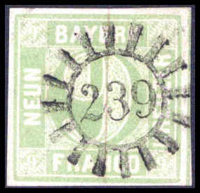 9 Kr., Luxusstück mit idealem MR "239" NEU-ULM, sign. Brettl BPP