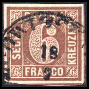 6 Kr., Kabinettstück mit Orts- und handschriftl. Entwertung, sign. Sem BPP. Katalogpreis: 200,-