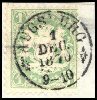 1 Kr., Luxus-Briefstück mit klarem K2 AUGSBURG, doppelt sign. Brettl BPP