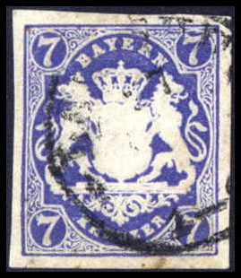 7 Kr. kornblumenblau, frisches, breitrandiges gestempeltes Exemplar (rs. etwas Tintenspiegel), Fotobefund Brettl. Katalogpreis: 650,-