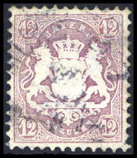 12 Kr., hervorragend farbfrisches Luxusstück mit violettem K1 NÜRNBERG BAHNHOF 2/12 71 auf sauberem blauem Brief nach Frankreich (Briefpapier re. unten kl. ausgeblichene Stelle) mit rotem "P.P."-Stempel sowie blauem Durchgangsstpl. von