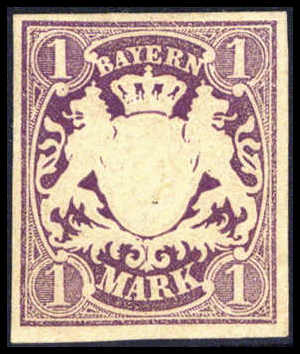 1 Mk. dunkelviolett, allseits breitrandiges, sauber ungebr. Exemplar in frischer Farbe, winz. punkthell, sonst tadellos, Fotoattest Brettl BPP. Katalogpreis: 2.500,-