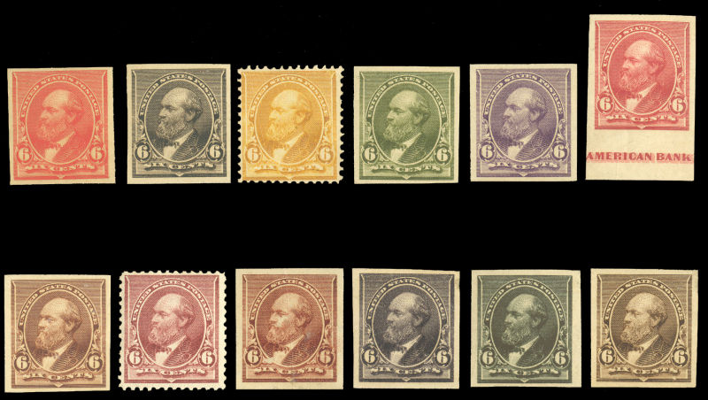 1890-93 Issue (224TC) 1890 6c perforated (2) and imperf. (10), complete set of 12 different trial color proofs, mostly l.h., fine-v.f., cat. Value $1440 (Image)